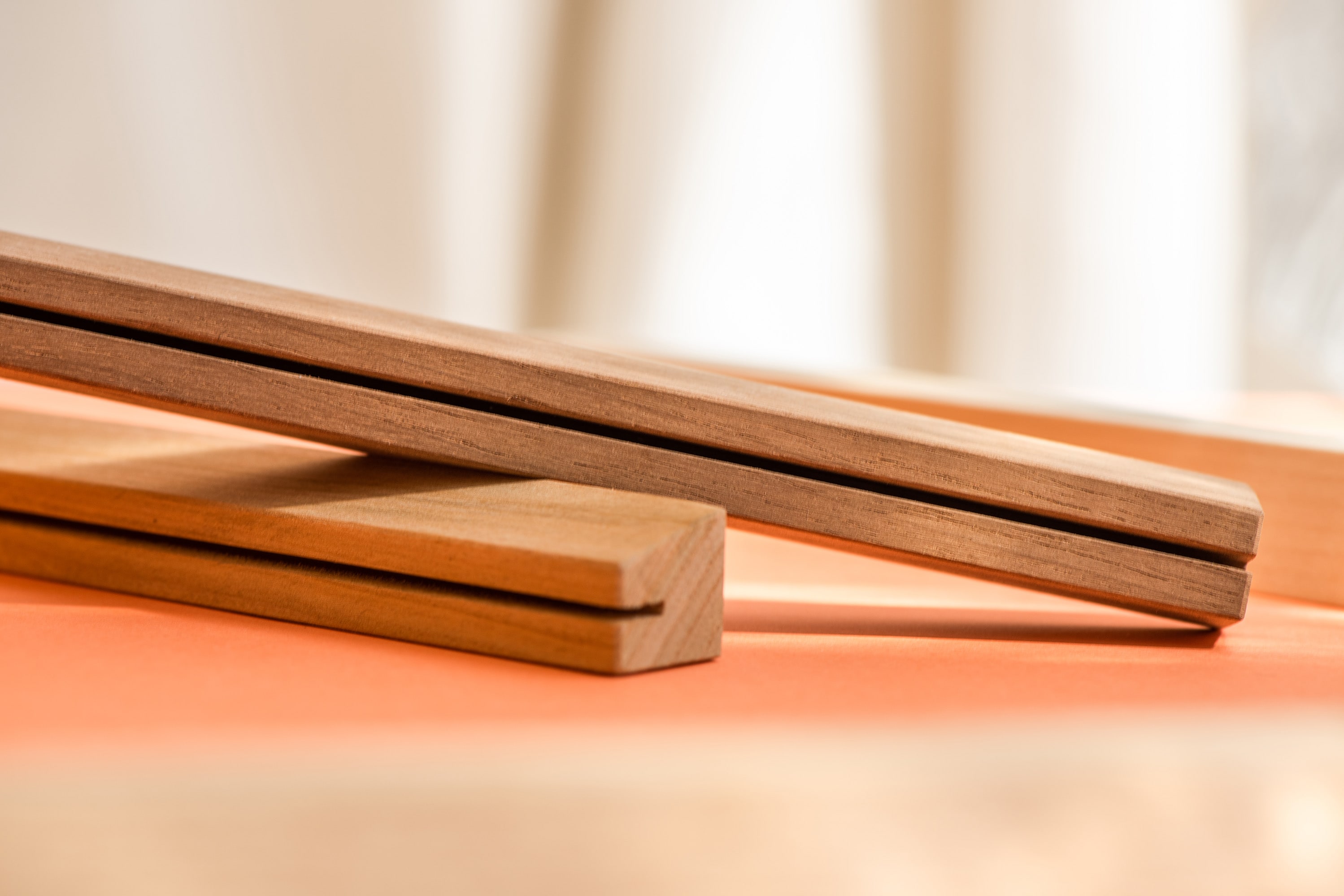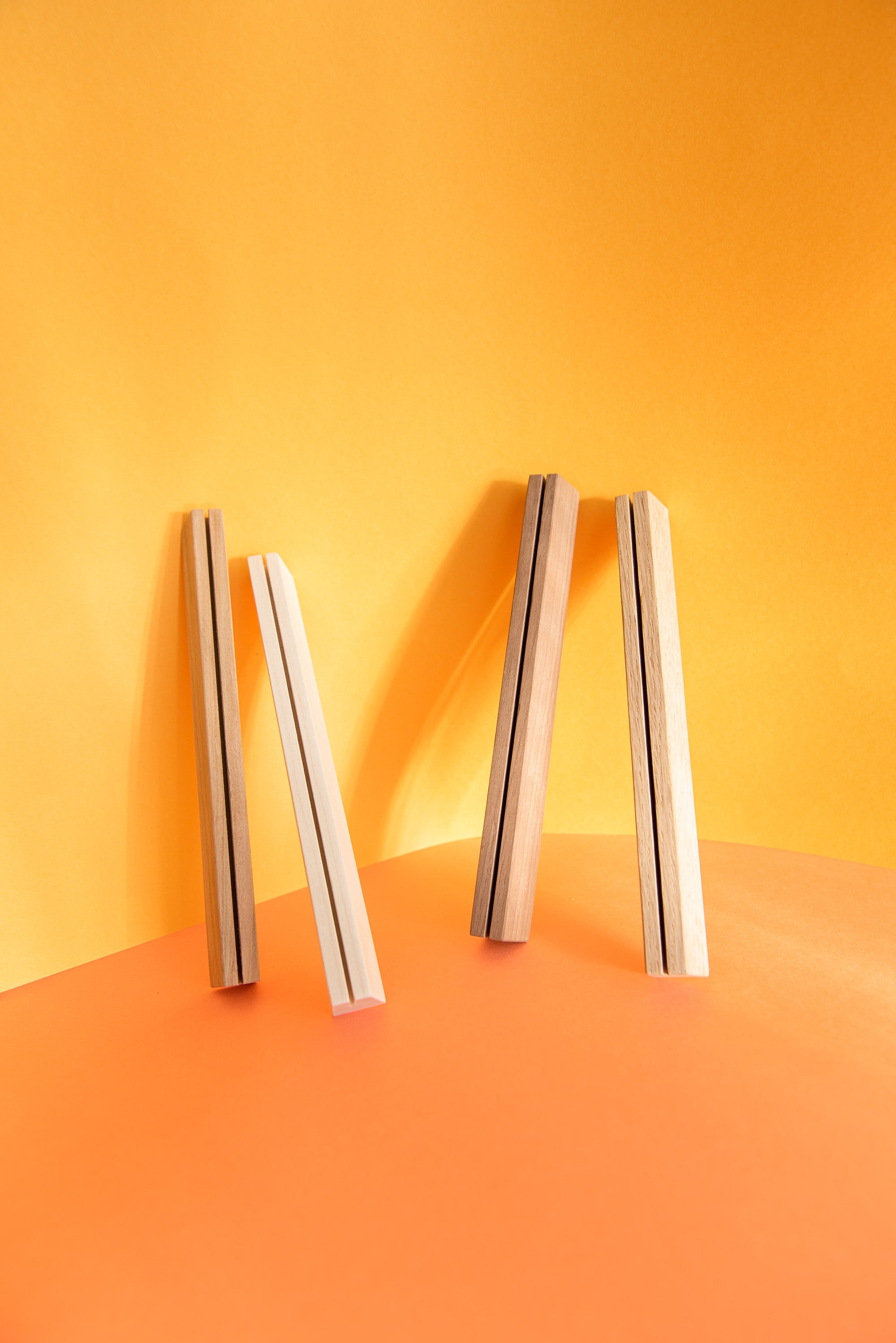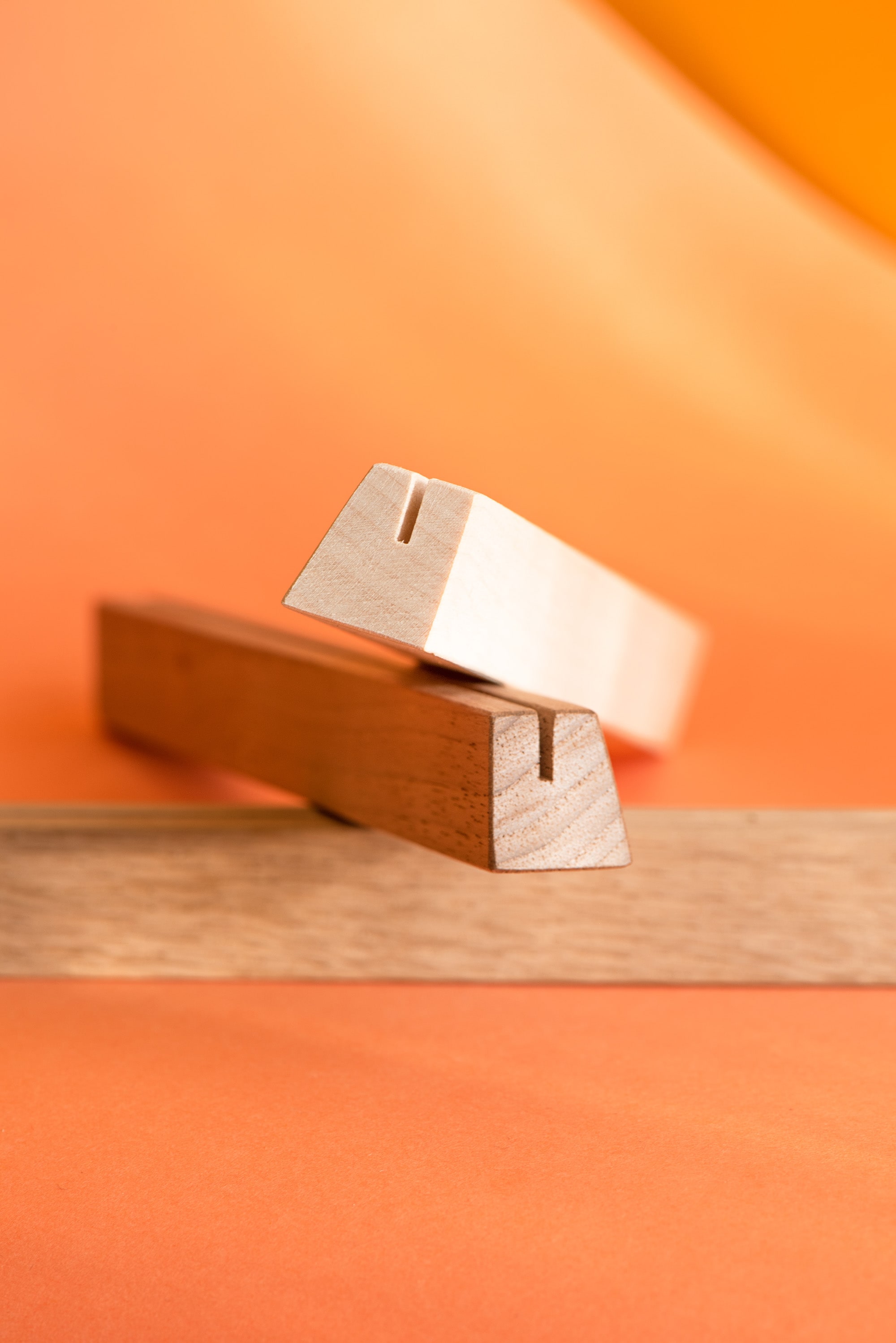 In den schlichten Kartenständern können die Karten sowohl hoch- als auch querformatig platziert werden. Sie sind in den vier Holzarten Ahorn, Eiche, Nuss und Kirschbaum erhältlich.