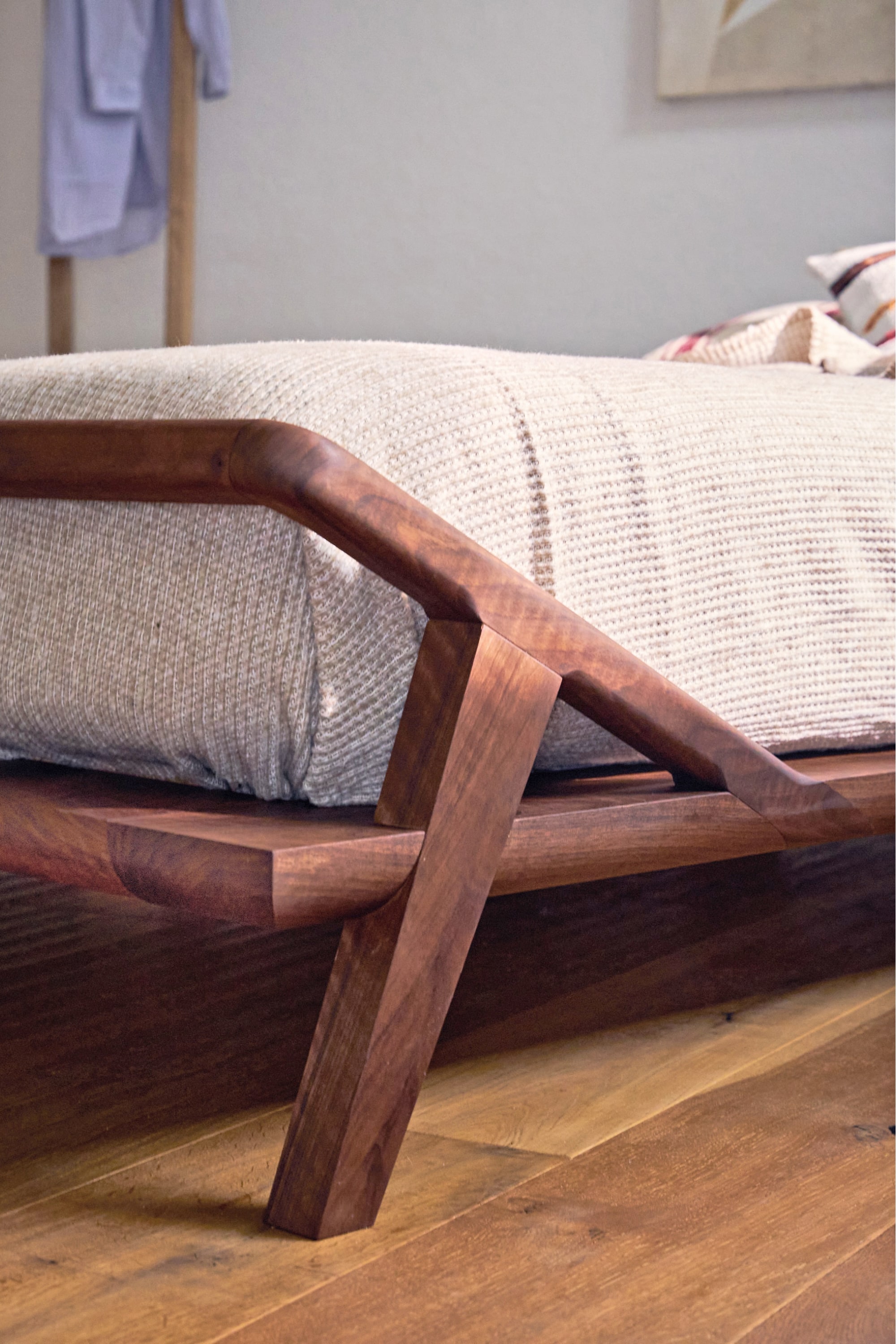 Das Bett wirkt durch die runden Formen einladend, die schlanke Konstruktion fügt sich in jeden Raum gut ein.