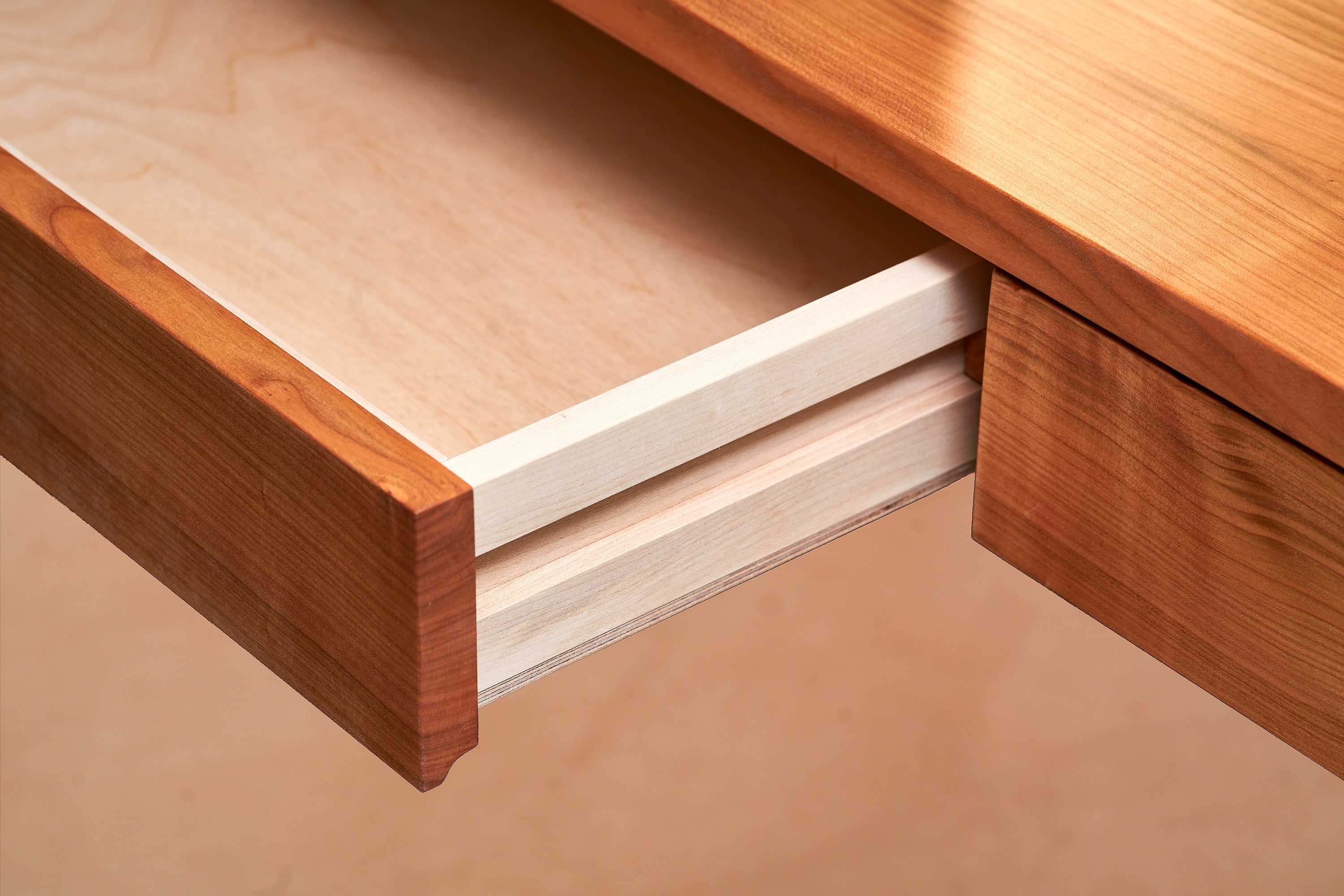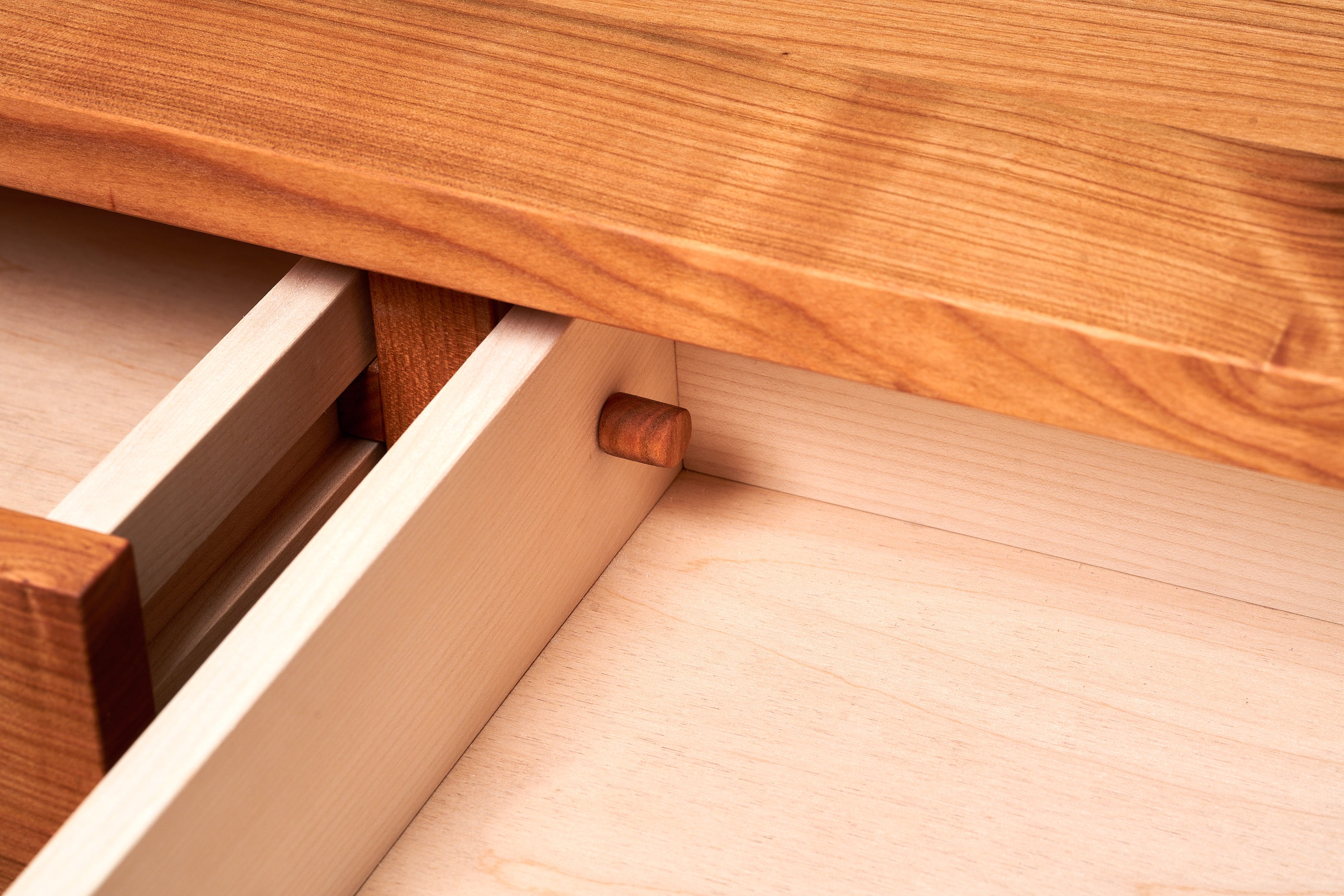 Die Schubladen sind klassisch aus Ahorn gefertigt und laufen auf einer Laufleiste. Sie können durch eine versteckte Griffnut von unten geöffnet werden.